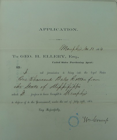 One unassuming and unofficial teamster, Cato Govan, former slave of Mary Pugh Govan of Marshall County, hauled cotton to Memphis between 1863 and 1865 for whomever would pay his price. He states so in a Southern Claims Commission case in which he asked for $1,600 compensation for property commandeered by the Union Army while it was at Holly Springs. Govan’s ingenuity raises the question of how many other African Americans were navigating Mississippi and Tennessee roads to get cotton to Memphis. It seems highly unlikely that Crump would have hauled his own cotton.
